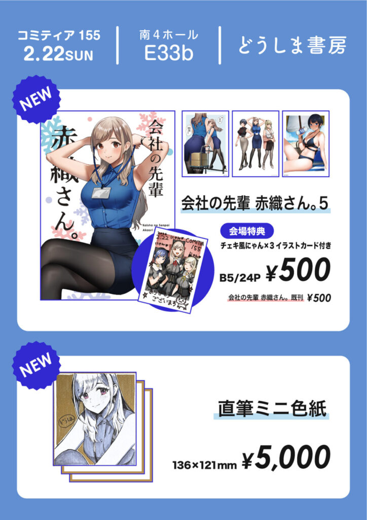 2026年2月22日に開催のコミティア155に【E33b】どうしま書房で参加します!